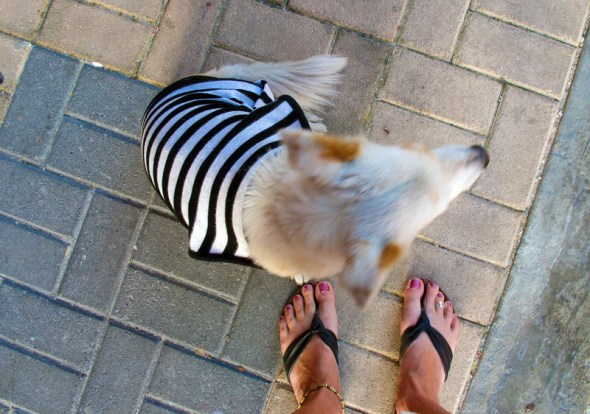 And the animals.  This little sweetie was laying on the sidewalk and I clicked my tongue so that it would look at me for a picture.  Well, it got up and walked over to me and just sat at my feet while I massaged its ears.  Sooooooooo cute…and I love the sweater!!