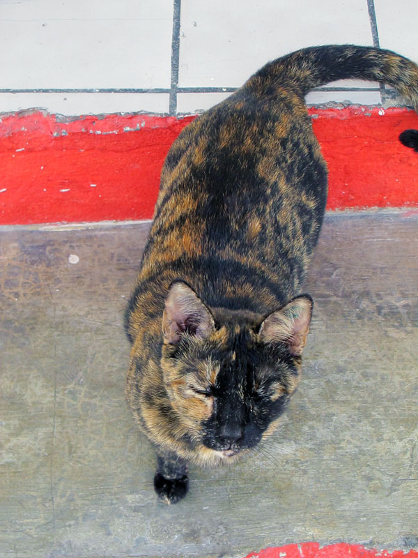 Amazing likeness, huh?  Apparently, the vast majority of tortoiseshell cats are female…just a little tidbit of information.  Anyway, this little sweetie would wait for me outside the hotel every morning, so it was like going out and greeting Nutter each day.  In fact, I would go outside and say, “Hi, Nutter!”  She didn’t care if I didn’t get the name right…she was down for a little affection.