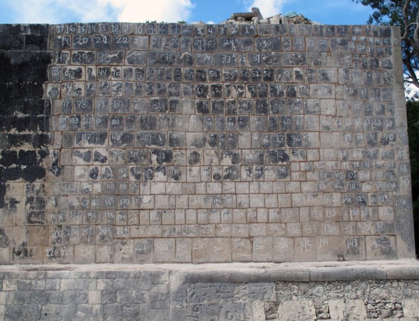Deb, I believe the numbers on the blocks of stone were placed during reconstruction. The pieces of this building were dismantled and numbered, and then put back together in the correct order. I’ve seen this at other sites not so well known as Chichen Itza. I’ve been to C.I. twice over the years; planning third visit this year. In ’91 was fortunate to be able to climb up, all over, and into spaces now restricted. El Castillo from the top is spectacular, and felt sort of spiritual for me. This year will be my third visit to C.I. –looking forward to seeing what’s been excavated since my second visit in ’98. Extremely interesting (to me, anyway) is info about how of el Castillo was reconstructed in the early 1900s. This can be found in old books (with photos) written by and about archaologist Edward Herbert Thompson. I found these through a library interstate lending system . Thoroughly enjoy your blog posts, BTW.