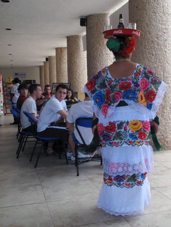 Deb, we climbed El Castillo in 2002. Gorgeous photos! The beer on the head waiters are kind of weird, but when we were in Yelapa, I actually saw a local woman in the village talking to her friend balancing a bowl of fruit on her head. I wanted so badly to take the photo, but didn’t have the nerve. It was daily life, not a gimmick.