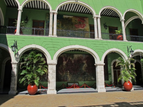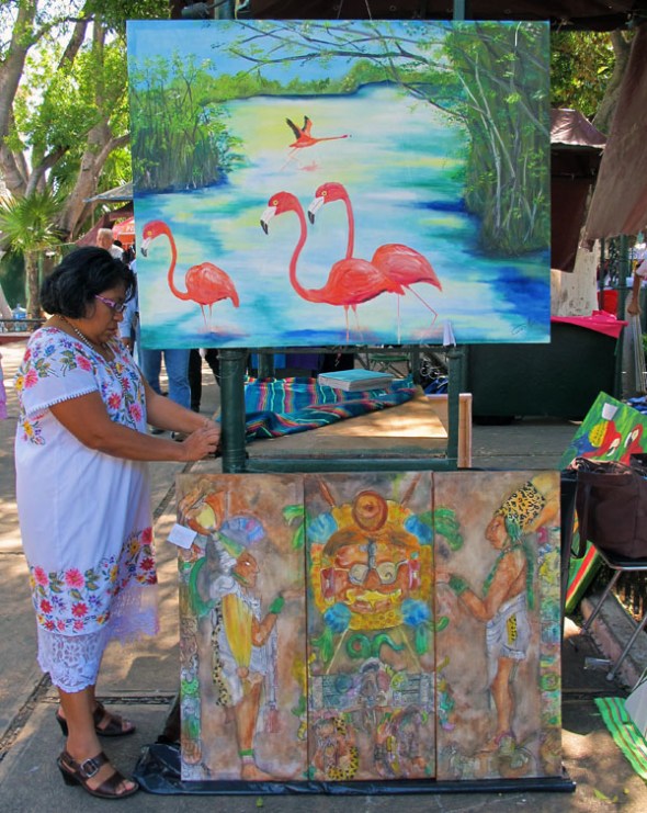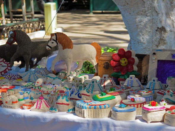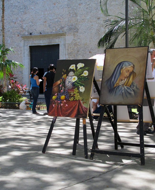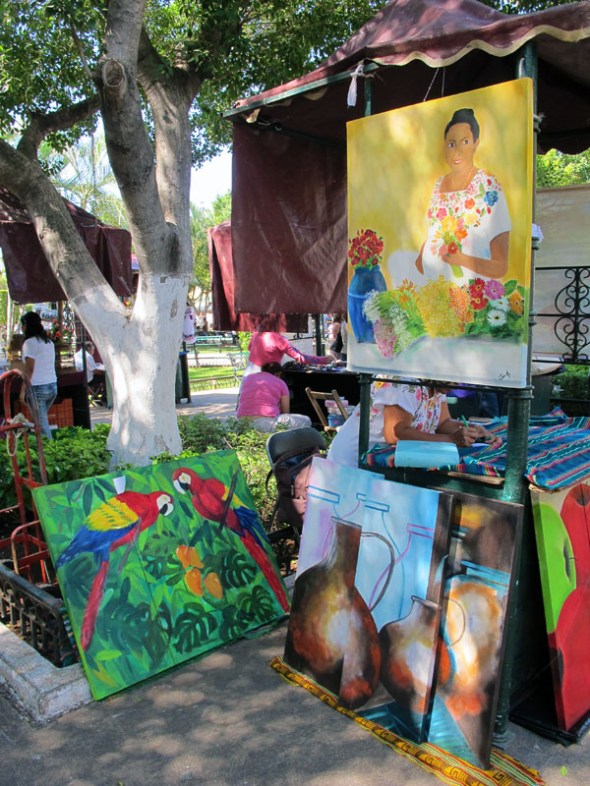 And across from an outdoor art gallery. Art is a big deal in Merida…there are many artists displaying their works here…
