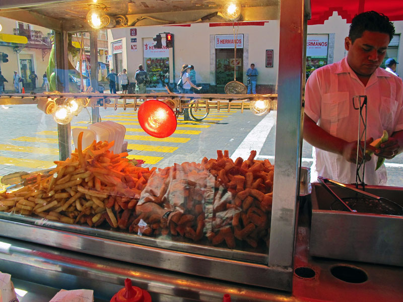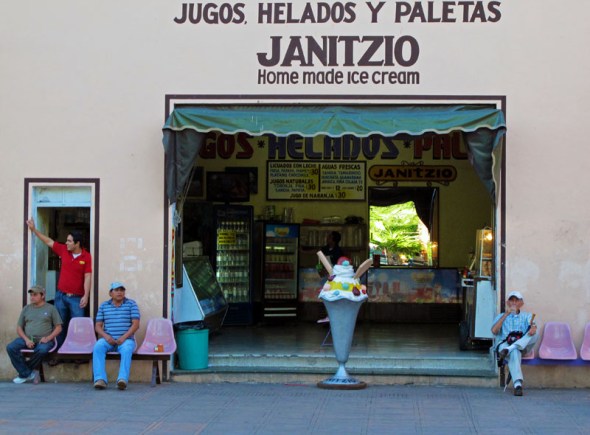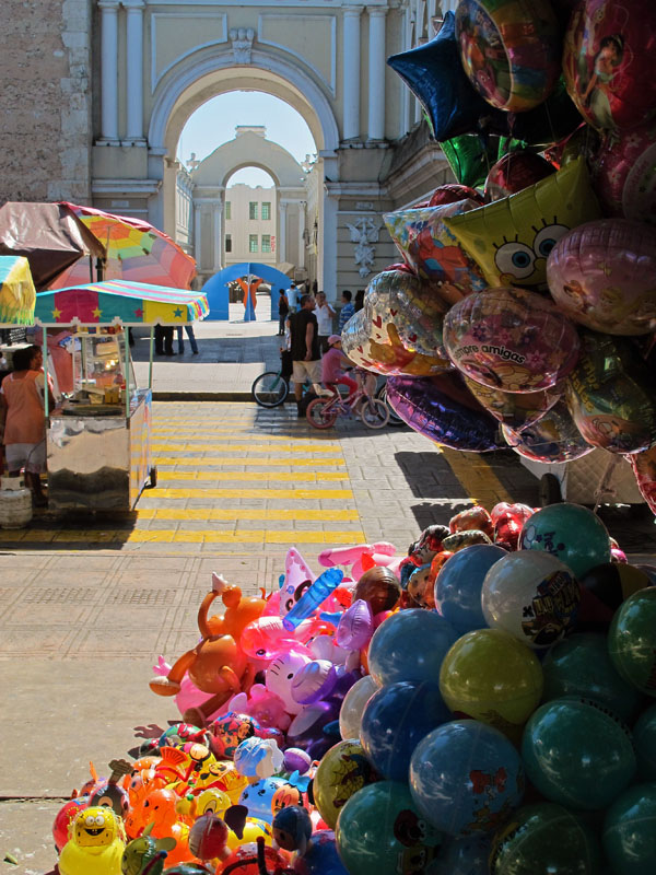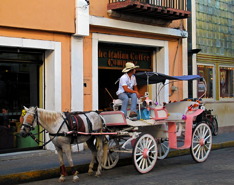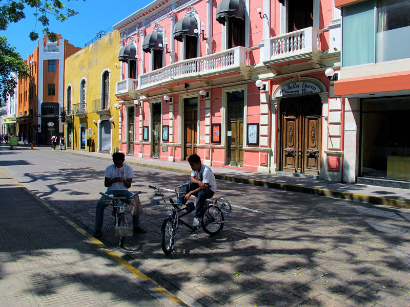 Merida is truly a concrete jungle. I guess that’s why there are so many little parks that appear every few blocks. The streets are narrow, the sidewalks are narrow and the traffic is intense during the day downtown. While this street scene looks pretty quiet, you really have to be attentive to traffic and stepping into the street. Drivers are not pedestrian friendly, so be careful.