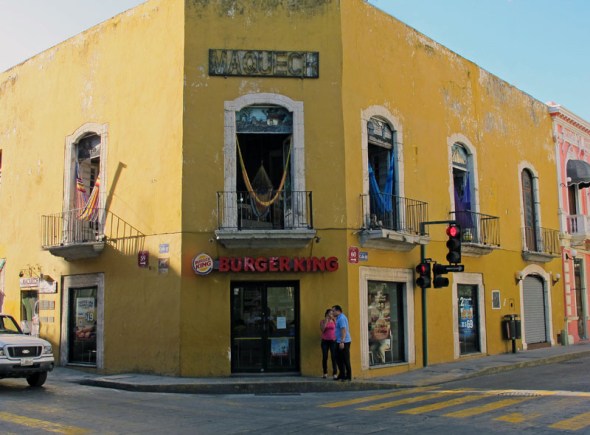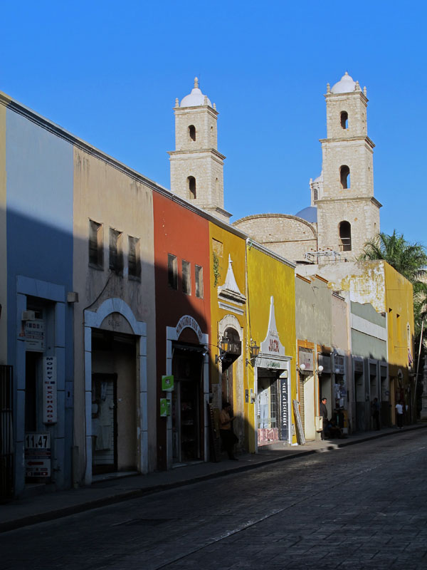 It’s been awhile since I lived in a big city.  I’ve lived in St. Louis, Minneapolis, Dallas, New Orleans, and Washington DC.  But for the last 12 years, I’ve lived in the burbs or smaller towns.  I had forgotten how impressive old architecture can be.  Downtown Merida is extremely congested in that all the homes and businesses are connected in one continuous building along each block.  The sidewalks and streets are narrow so you can feel very enclosed when you’re walking around.  The traffic is VERY heavy in the downtown area and drivers are not pedestrian-friendly, so you have to be careful and attentive when stepping off a curb.