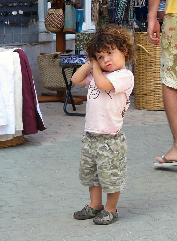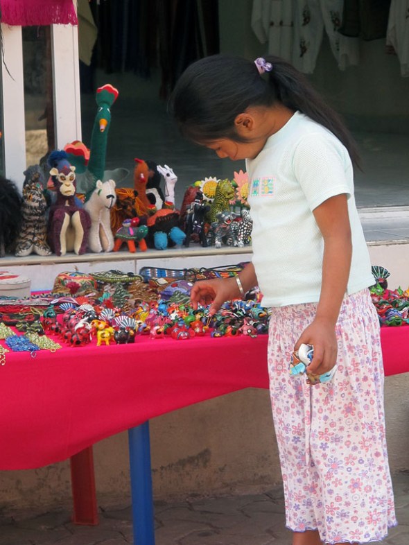 He occasionally messed with the trinkets on the neighboring vendor’s table.  This little girl meticulously replaced everything he got out of order.  These children live in a different world than American children.  Our children could definitely learn a lesson from them.