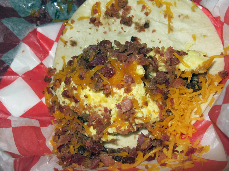 I had to get up at 4:00 yesterday to make my 7:45 flight out of Austin. I decided to eat at the airport and opted for the Salt Lick booth for a breakfast taco.