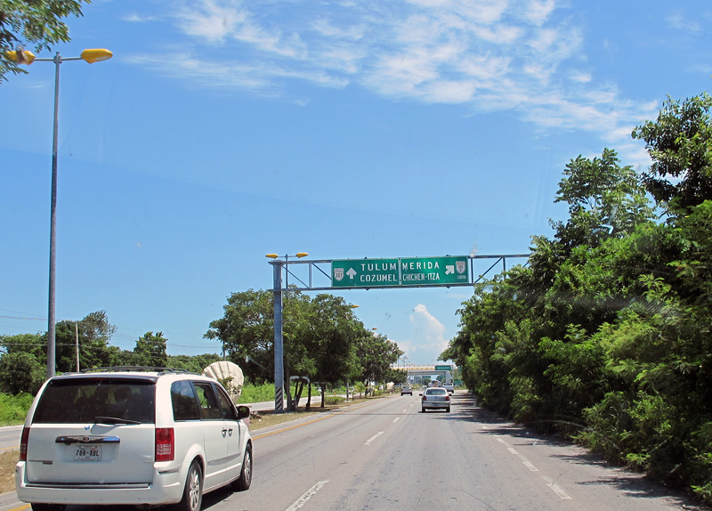 Even though I had to wait about 15 minutes, I got a van with two other couples going to Playa del Carmen, so I was the first stop. Yay! Here we are going down the highway…