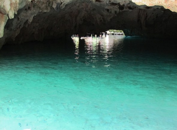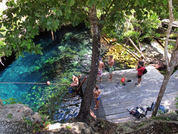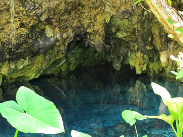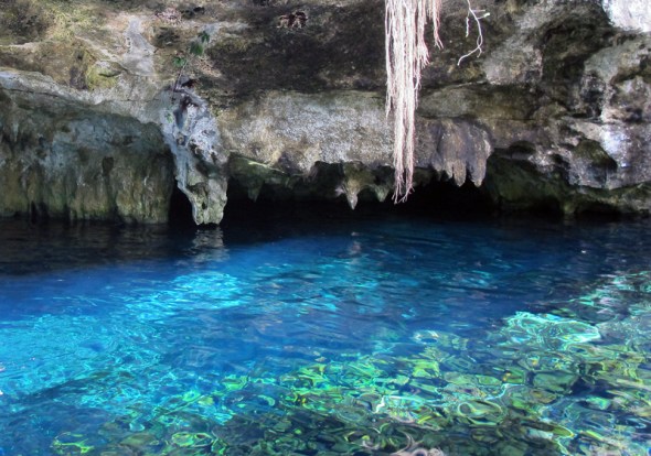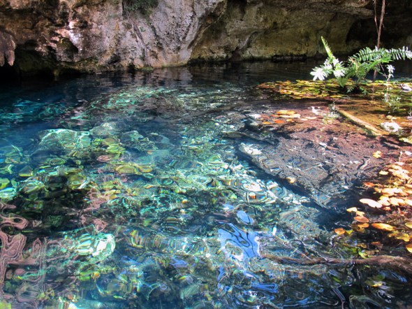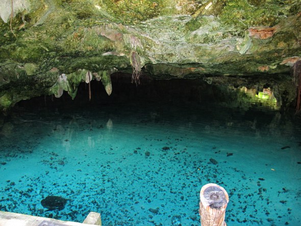 Now we come to a “feeder” cenote off the main one. It’s amazing how clear and blue the water is…