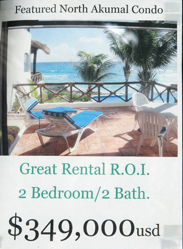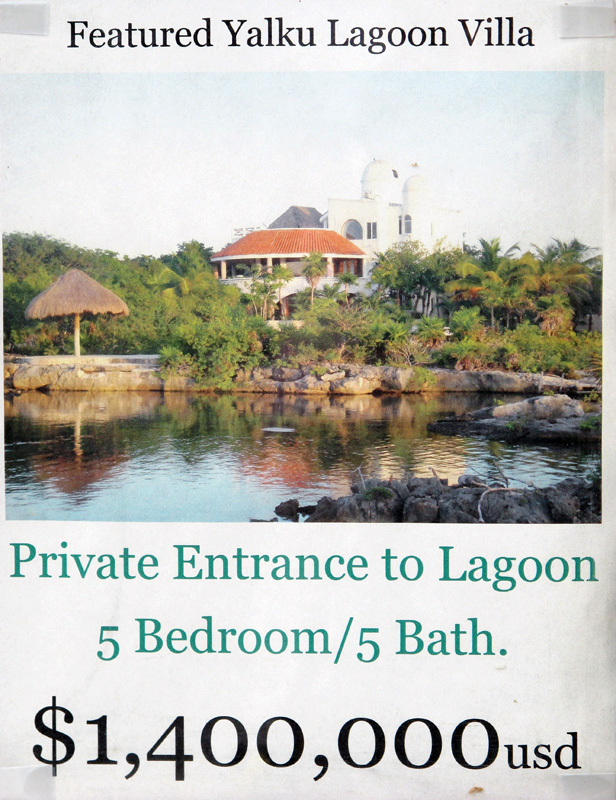 So when I left Lol Ha, I passed by a real estate office and took some pictures of the ads in the window. Kind of interesting to see the large range of prices for places in Akumal.