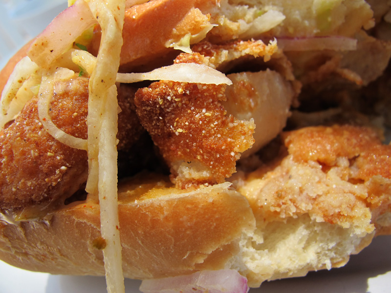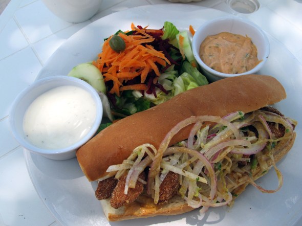This time, I had a scallop po’ boy. I LOVE po’ boys, so I was really excited about this since I had never seen one before on a Mexican menu. Here we go…
