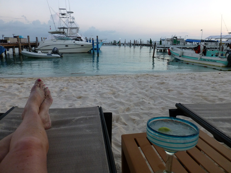 I posted the photo below on Facebook, but will share it here, as well. This is how my first day ended. I’ve never been to this restaurant before and now I can’t for the life of me remember the name. I liked the fact that they had the beach chairs. When I sat down, the manager or owner said, “You’ve been to Isla Mujeres before.” I don’t know how he knew that, but I said that I had been here quite a few times. He asked me what kind of music I wanted to listen to. I told him, “Anything Mexican.” (I don’t like it when I hear American music in restaurants in Mexico…I hear that every day at home.) Anyway, I thought that was cool. When I go to, like, Chile’s or Pluckers, they never ask me what kind of music I want to hear.