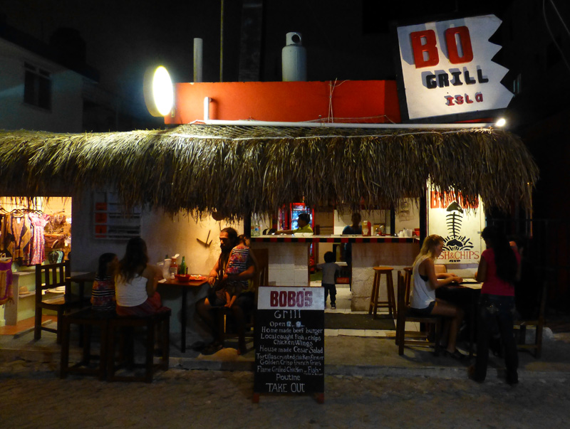 Here I’m standing at the corner of what used to be Zazil Ha.  (Not sure what it is now.)  When I first came to Isla back in 2006, the water was all the way up to this corner.  It’s strange how the beach can change so drastically.