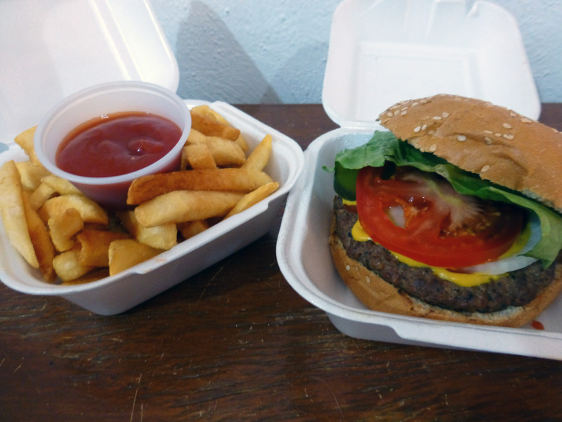 I washed out some clothes this evening and didn’t feel like going out for dinner so I just got a hamburger at Bobo’s Grill.