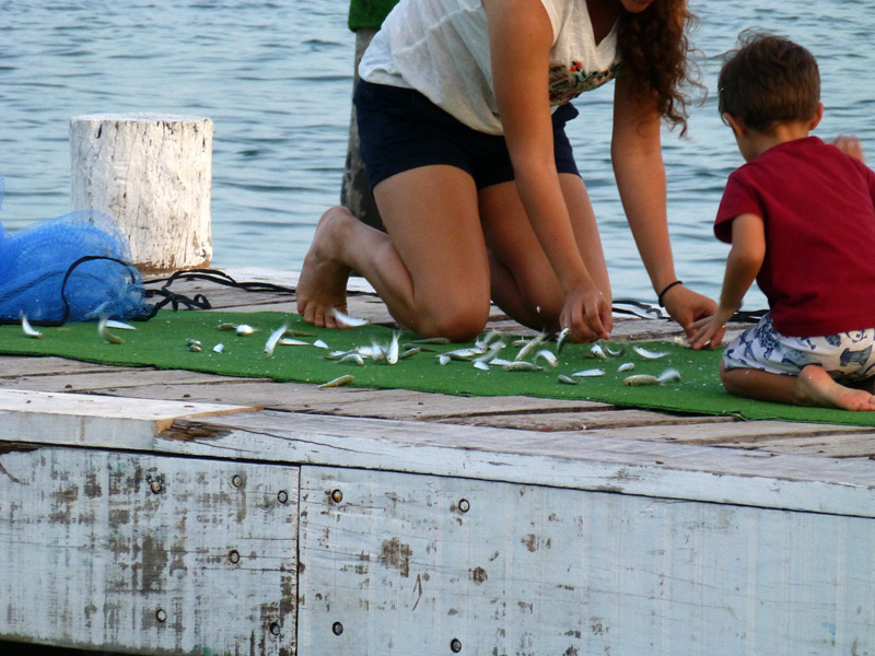And this young woman threw a net into the water and pulled it back up with a bunch of little fish, much to the enjoyment of the little boy with her.  They put them into a bucket of water…guess they’re using them for bait.