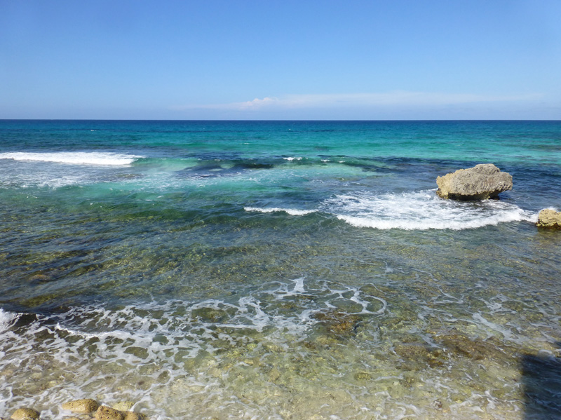 Since I was there at the hostel, I walked out to the east side of the island to see if I could find any sea glass. This side is much rockier and is not a good swimming beach.