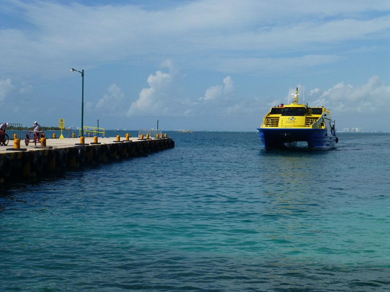 First of all, I had to take the ferry back to Cancun. Everyone hates to take the ferry to Cancun because that usually means it’s the end of your trip to paradise. But it’s not so bad when you know you’re coming back. Here it comes!