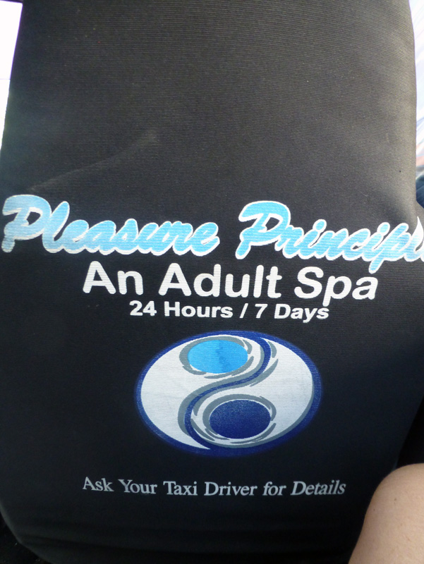 This seat cover was on the passenger seat in front of me. I was really tempted to ask the taxi driver about it, but I held myself back. Who knows what can of worms that could have opened.