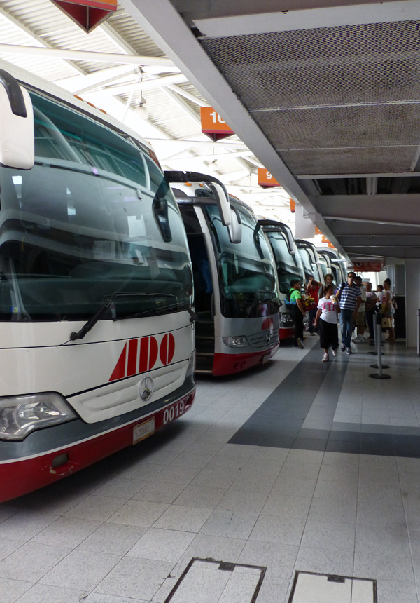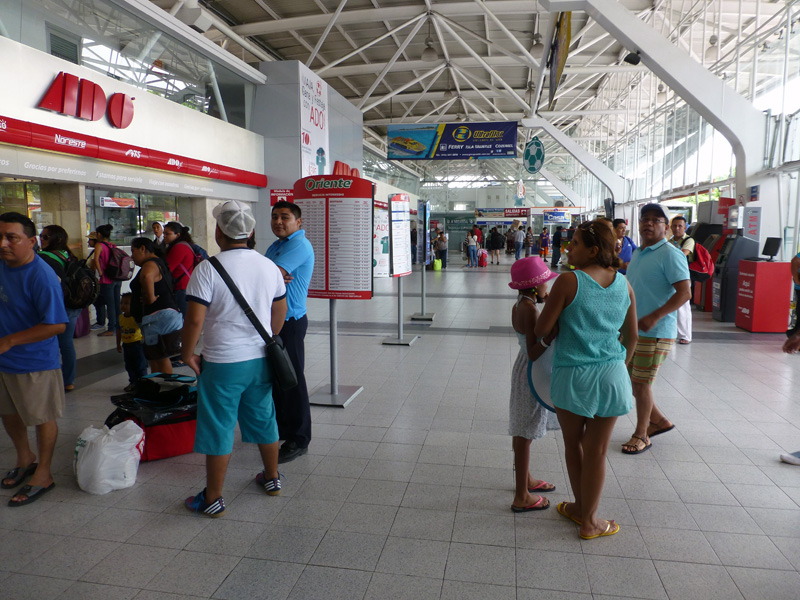 So here we are back at the Cancun bus station. I am always amazed at how these bus drivers can maneuver these big buses. Between driving through crazy Mexican traffic where everyone is driving like maniacs and then pulling into tiny parking spaces, I give them big kudos.