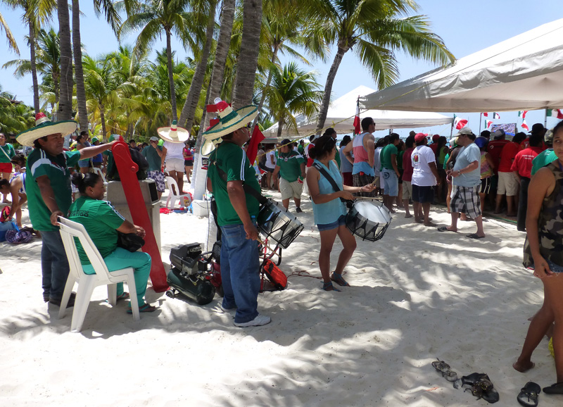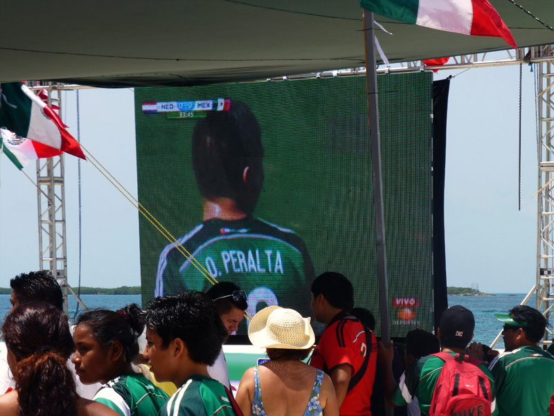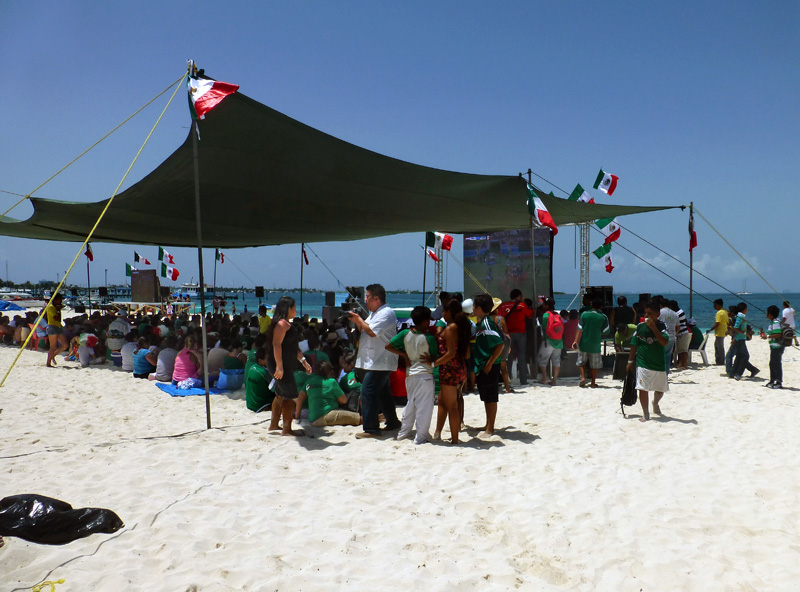 So now I’m back from Puerto Morelos and I just have a couple more days left on my vacation. I pretty much just totally lazed back and did nothing. The heat had a lot to do with that decision. Anyway, I will backtrack just a little bit before PoMo to say that it was kind of fun to be in Mexico during the World Cup. Not being an avid sports fan, I didn’t even know this was happening until I got down here and saw all the commotion. When Mexico was playing, it was a big deal. This is what I saw when I went down to the beach.