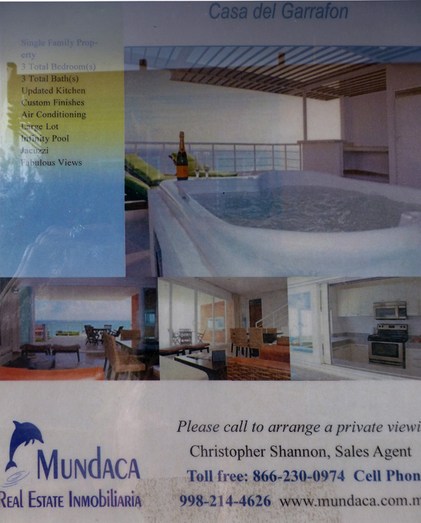 I was walking by the Mundaca real estate office one day and took the following pictures. They’re not the best because they were taken through glass and the sun was reflecting on the windows, but you can get an idea of what is being offered now.