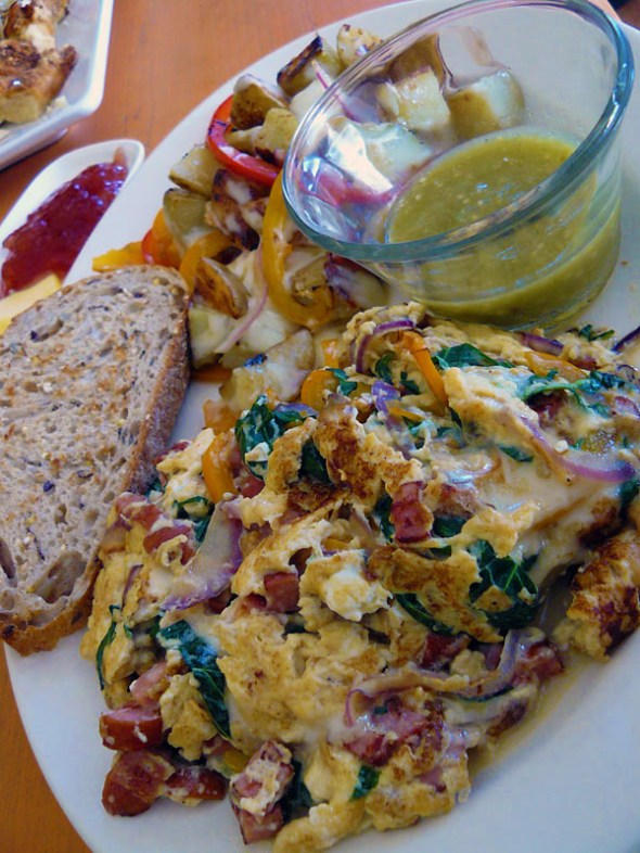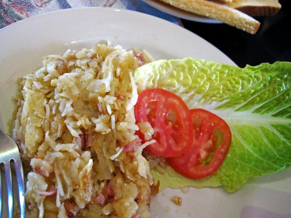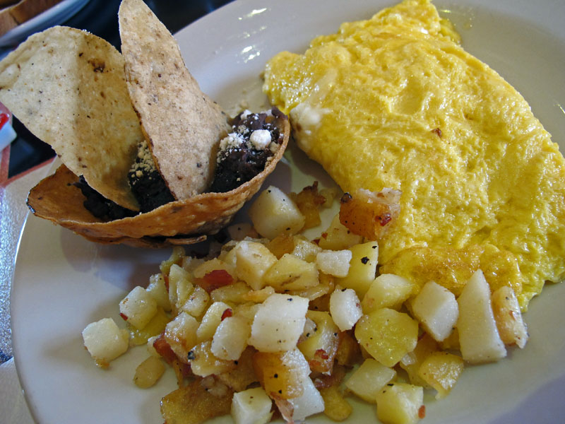 This was a cheese omelet. I didn’t know it came with potatoes, so I ordered a side of hash browns.
