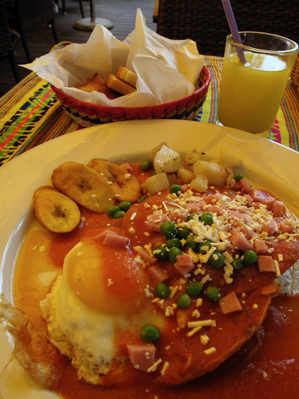 Huevos Motulenos – Alexia & Geovanny’s, Isla Mujeres…excellent…one of my favorite places for huevos motulenos.