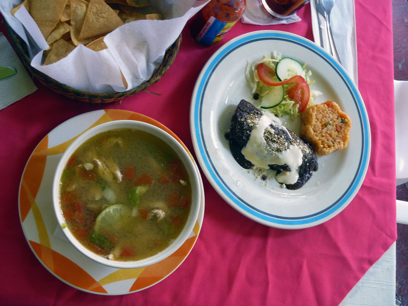 Tortilla Soup and Enchiladas Mole – Sancochos, Isla Mujeres…below average. I’ve heard good things about this restaurant, but the enchilada mole was dry and tasteless and the soup was just okay.