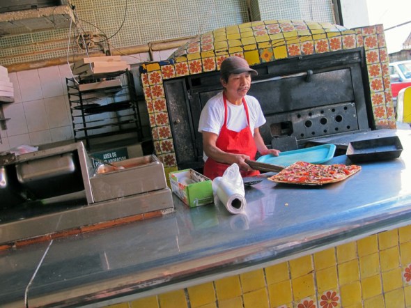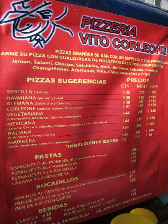 For something different, I tried some pizza one day. After I’m in Mexico for a few days, I get a craving for non-Mexican food and this placed filled the bill. Put simply, this place is just a tiny little hole-in-the-wall with no frills. It’s open to the street with no air conditioning, but it was worth it.