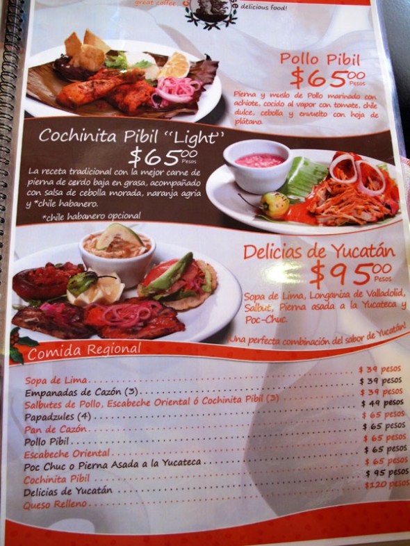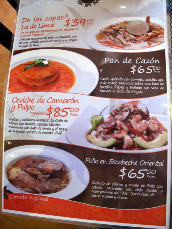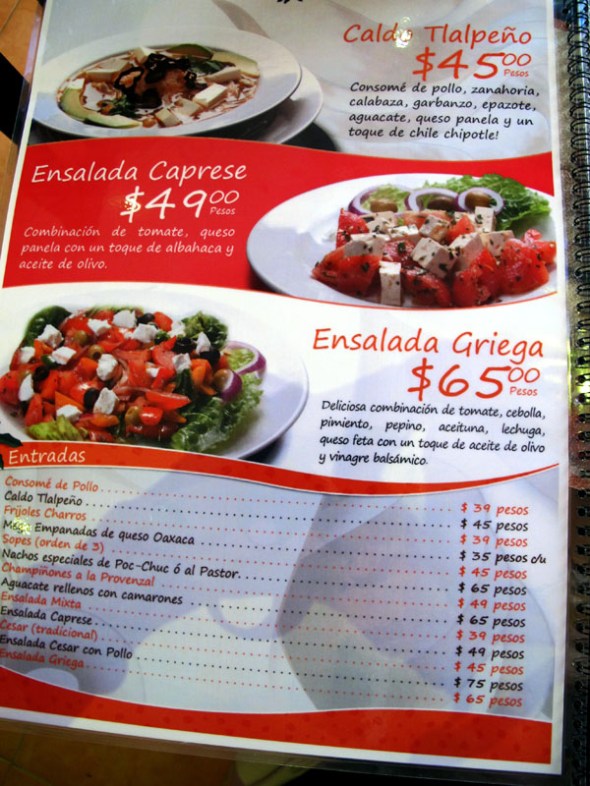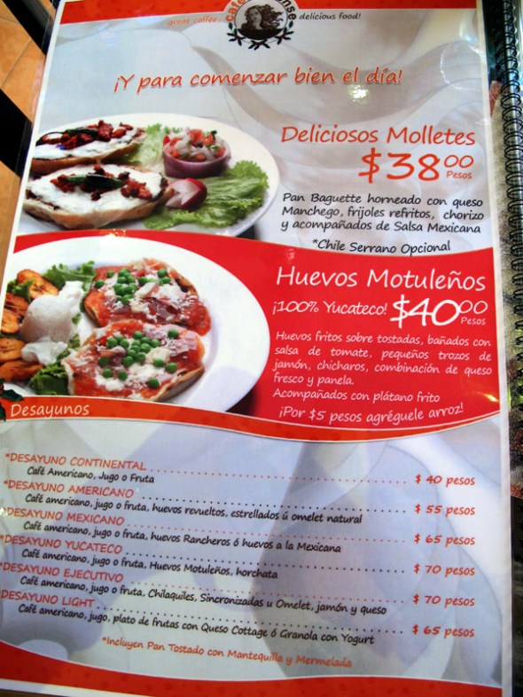 I’m showing a few pages of their menu because I frankly couldn’t believe the prices. Huevos Motulenos for $40.00 pesos! Unbelievable…I’ve never paid less than $50.00.