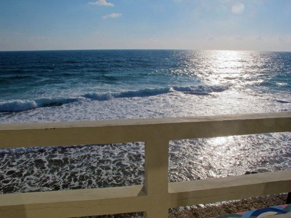 So, when I first got to Isla on this trip, I started out at the Suites los Arcos. I didn’t get any pictures of it, but I was not impressed. It’s average at best, and overpriced at $98 a night. Maybe it would have been better if I had had a room with a balcony overlooking Hidalgo. At any rate, I left after two nights and spent the next night at the Rocamar…better priced at $72 a night. I’ve never stayed here before, but how could you go wrong with a view like this? The rooms are very stark and basic, but very clean. It’s nice to be able to sleep with the door open so you can hear the waves.