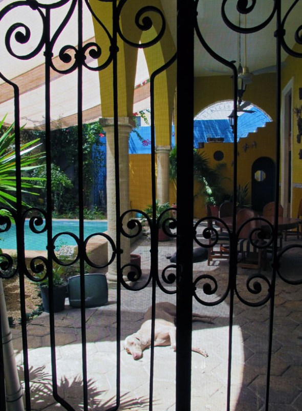 This was an inside courtyard to an art gallery I visited. It was a private home for a couple who had their gallery on the street-side of the home. Their Weimeraners look very comfortable, don’t they? I would have to say that if I lived in Merida, I would HAVE to have one of these little courtyards, preferably with a pool. The streets and house fronts are all concrete and everything feels very close and congested…and HOT! Everyone you talk to mentions how incredibly hot it gets in the summer here. I think a little oasis would be a necessity.
