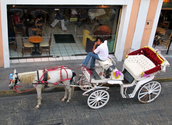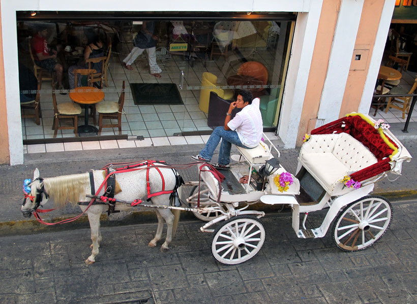 I was in a gift shop on a second floor and got another shot of one of the horse-drawn carriages. On a side note, I will be doing a post in the future of black and white photos of Merida. I felt many of the shots I took made more of a statement in black and white than in color.